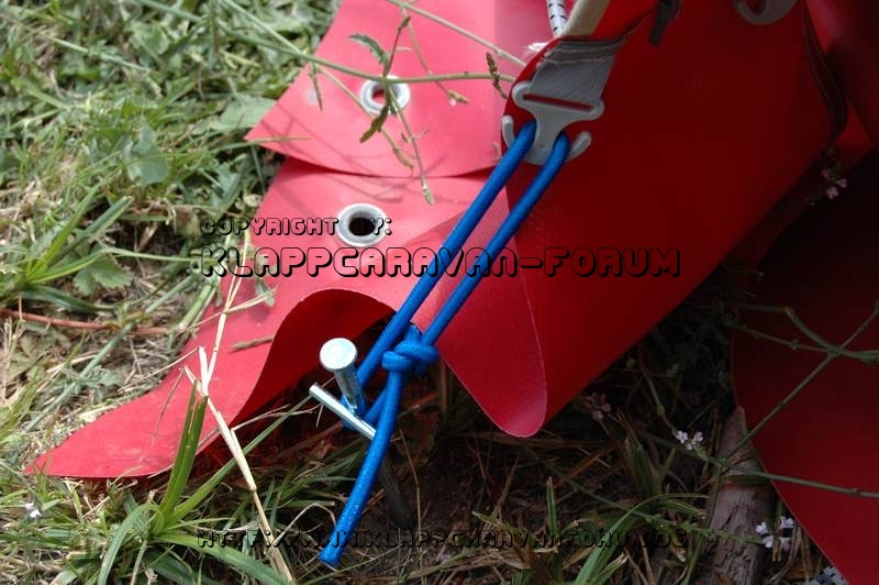 Spanngummis selber gemacht - Aus Gummiseil (5,2 mm Durchmesser ca. 25-30 cm lang) mit Acht-Knoten.