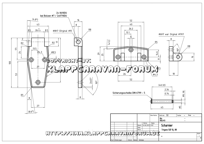 Trigano 5GF Scharnierteil Zeichnung