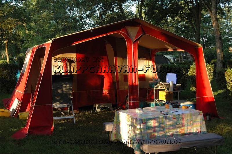 Das geistert schon eine Weile in meinem Kopf rum, allerdings wollte ich immer über die Teleskopstangen gerne die VZ-Verlängerung noch nach vorne spannen, wozu aber irgendwie ein par Ösen oder so etwas fehlen. Aber Nach Norberts Beitrag ist mir eigentlich klar, dass dies nicht sein muss und die Sache auch so gut funktionieren wird.Niels$ hat geschrieben:Auch ein Quick&Dirty-Aufbau. Wie von Jugger64 dargestellt, ist es kein großes Problem, etwas mehr Tuch zu falten, also klappt dies mit der Vorzeltverlängerung auf jeden Fall. Die Teleskopstangen etwas ausgezogen und fertig ist die Laube. Die ganze Sache bietet dem Hauptzelt an der Eingangsseite Wind-& Regenschutz und ist mit ein par zusätzlichen Heringen sehr schnell aufgebaut. Wenn die Sache zu instabil wird, kann man ja noch die beiden zusätzlichen Stützen der Vorzeltverlängerung einbauen, das ist auch keine Tat.